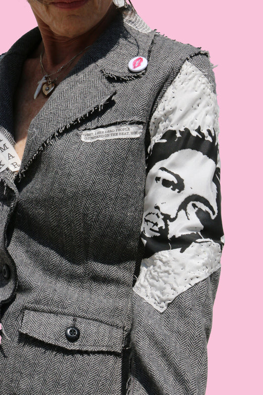 Kendrick Lamar "Not Like Us" Tribute Grey Wool Blazer W/Kendrick & Tupac Silk Patches & Lyrics