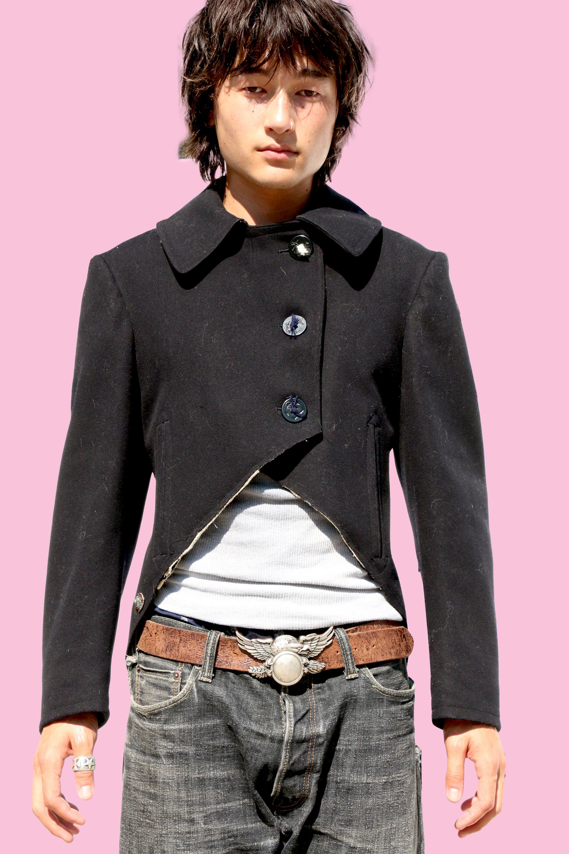 Vintage Navy Angled Cropped Peacoat W/Handknit Anchor Back Patch