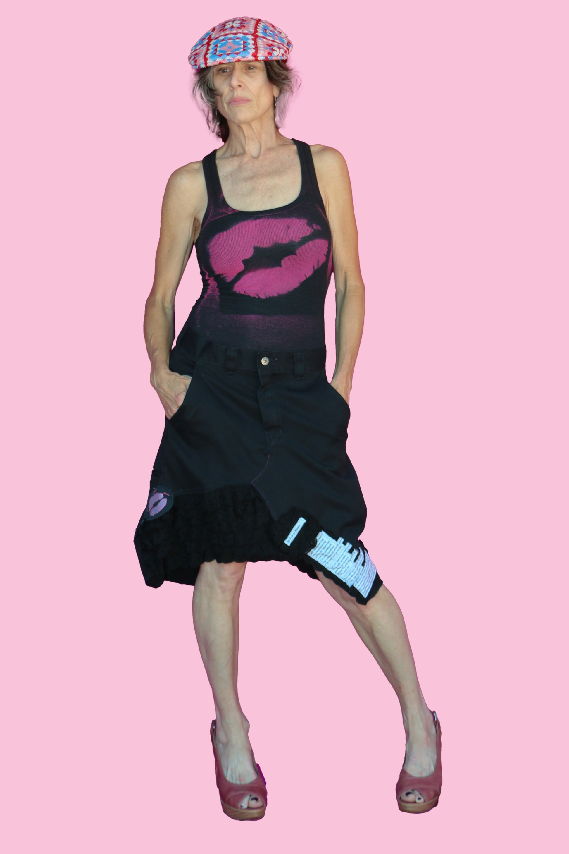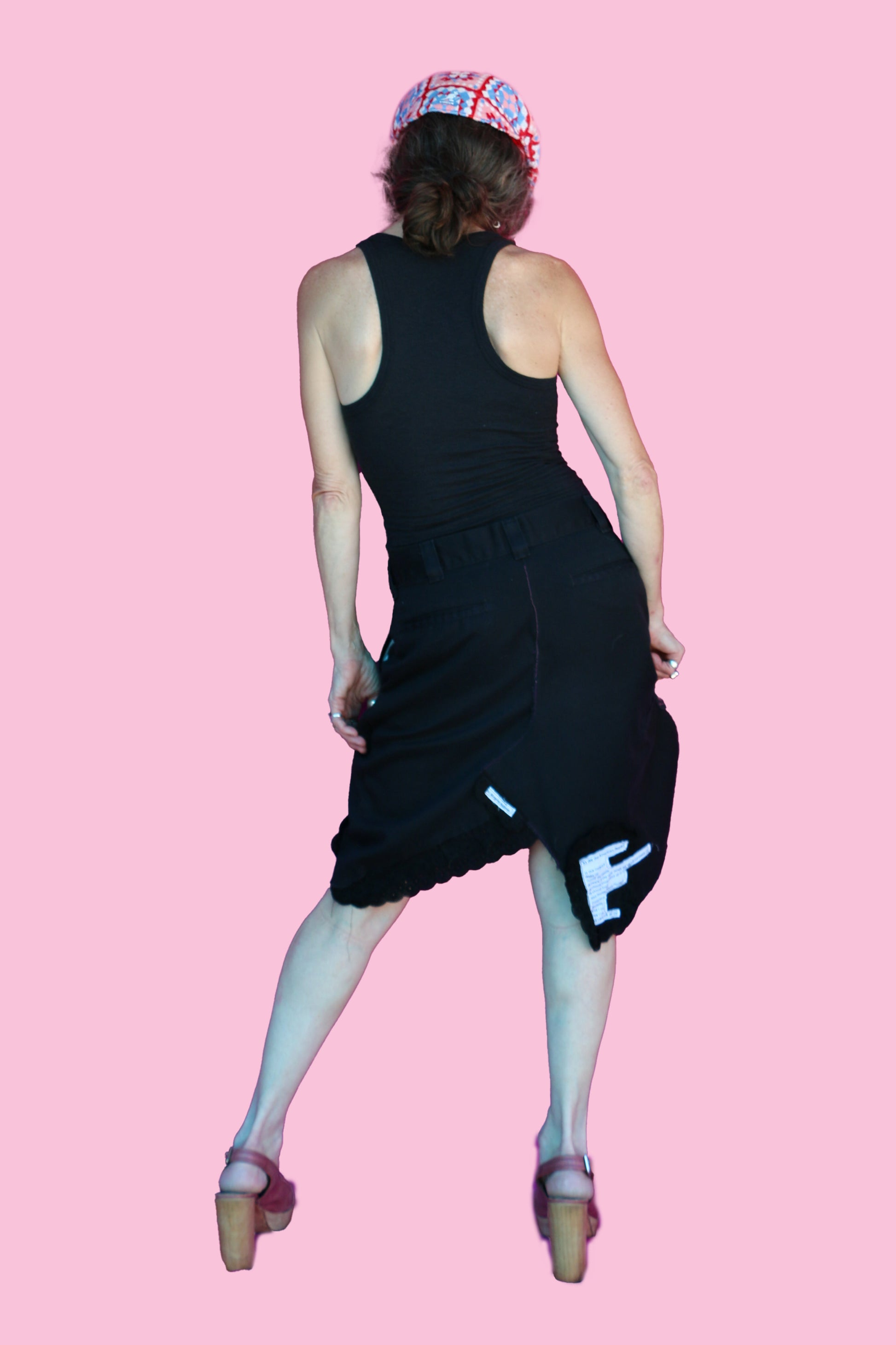 Originally a pair of played out Dickies, I created this skirt using my Husqvarna sewing machine and the beautiful words of Margaret.