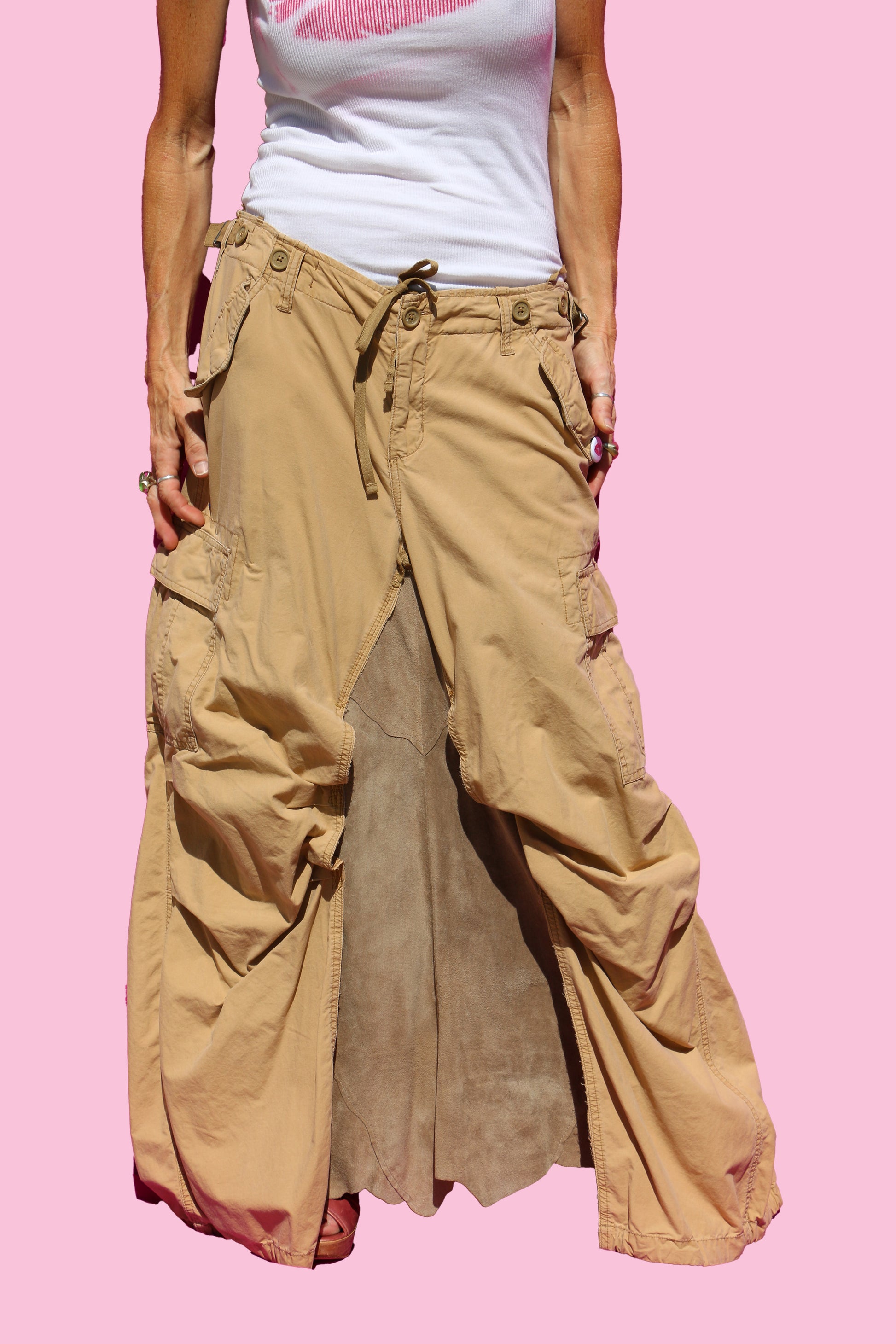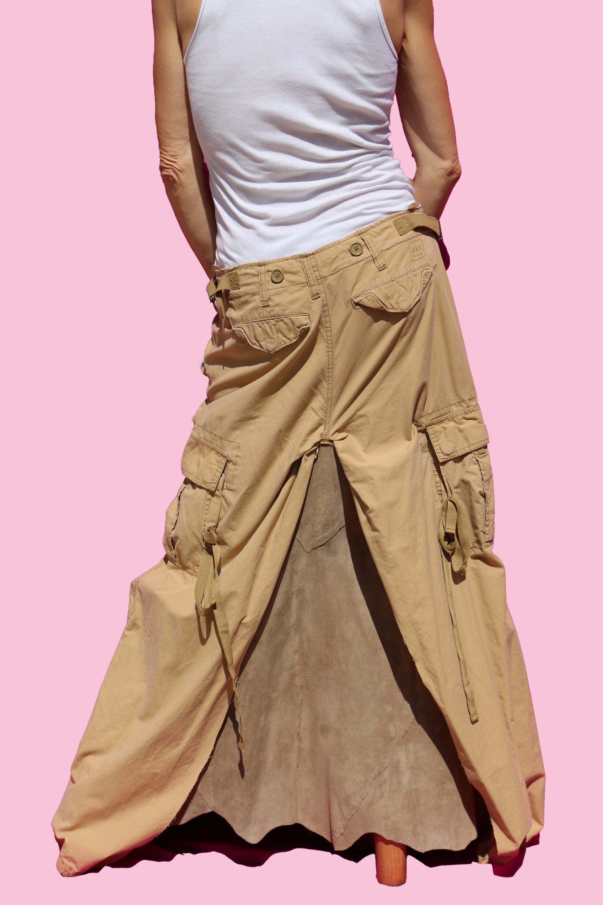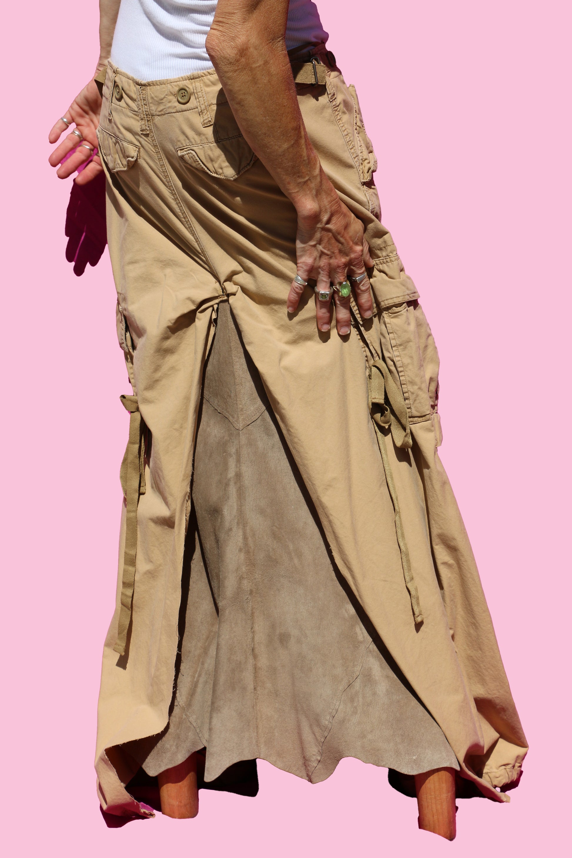 90's Tan Cargo & Suede Adjustable Maxi Skirt