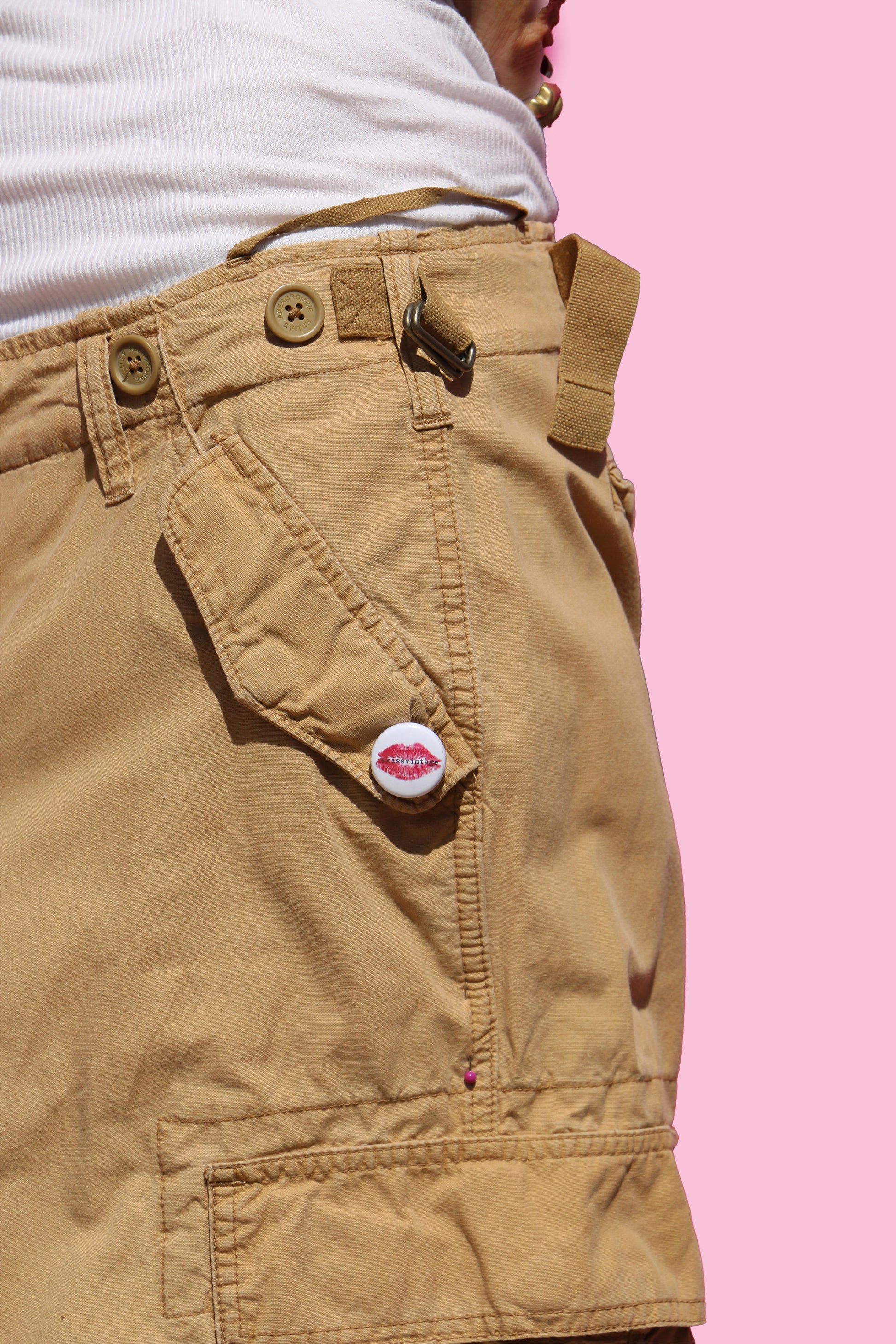 Contents: 90's tan Abercrombie cargo pants + thrifted, damaged suede skirt.
