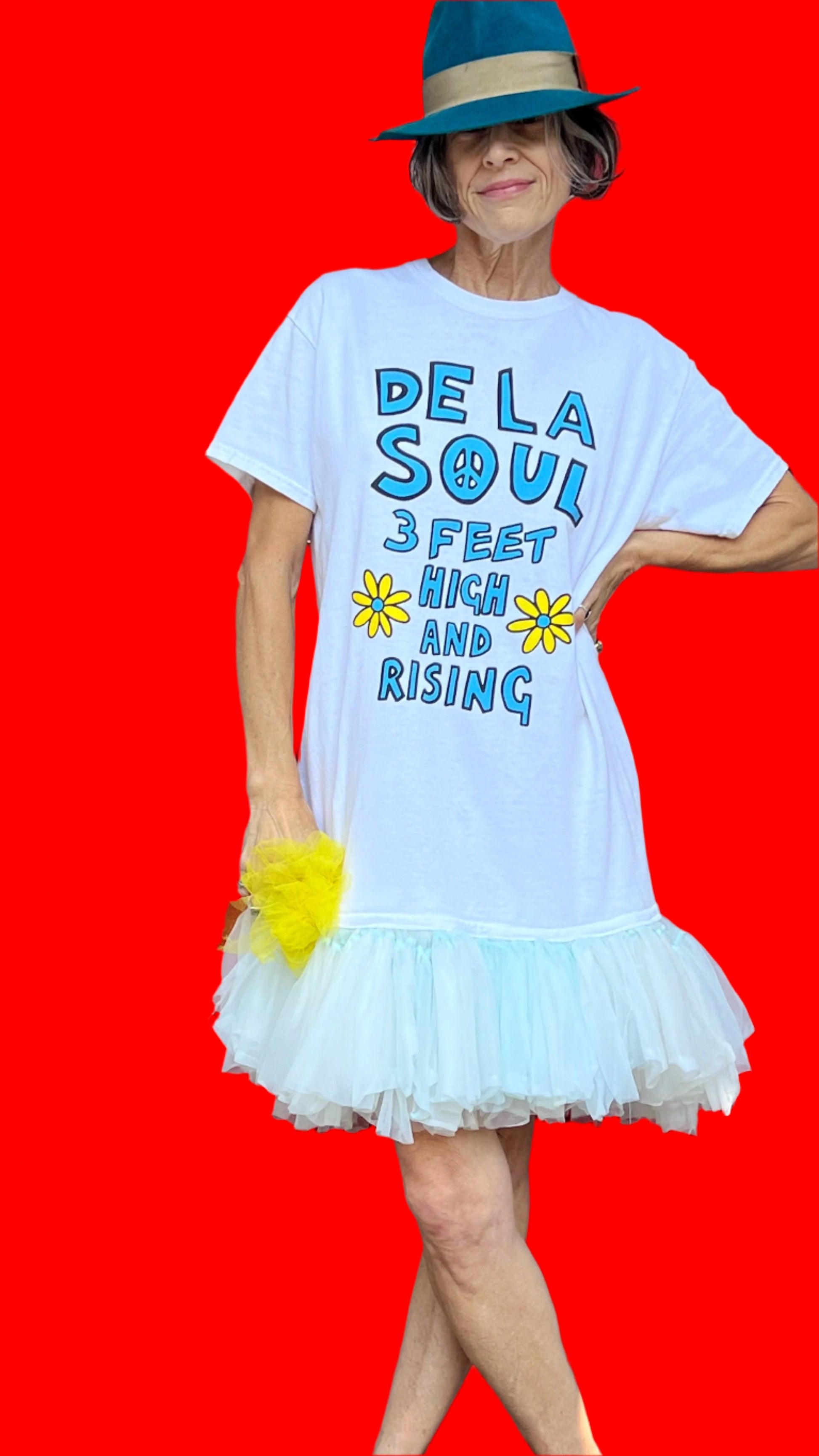 DE LA SOUL!! 3 FEET HIGH AND RISING!! THE MAGIC NUMBER!! This was the hiphop I came up on. Feel good. Express yourself. Be Goofy. Have fun. Yes! This dress checks ALL those boxes.