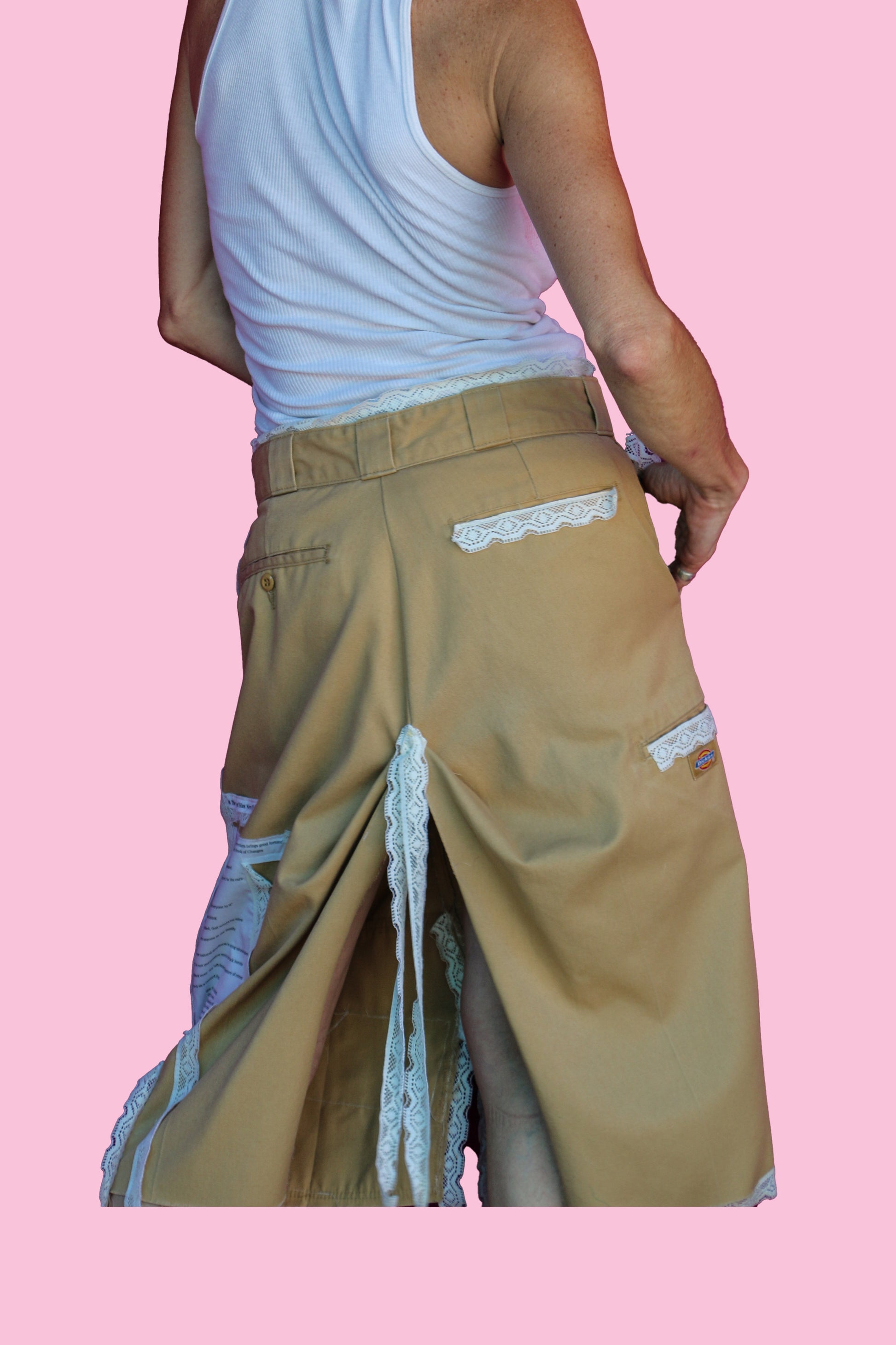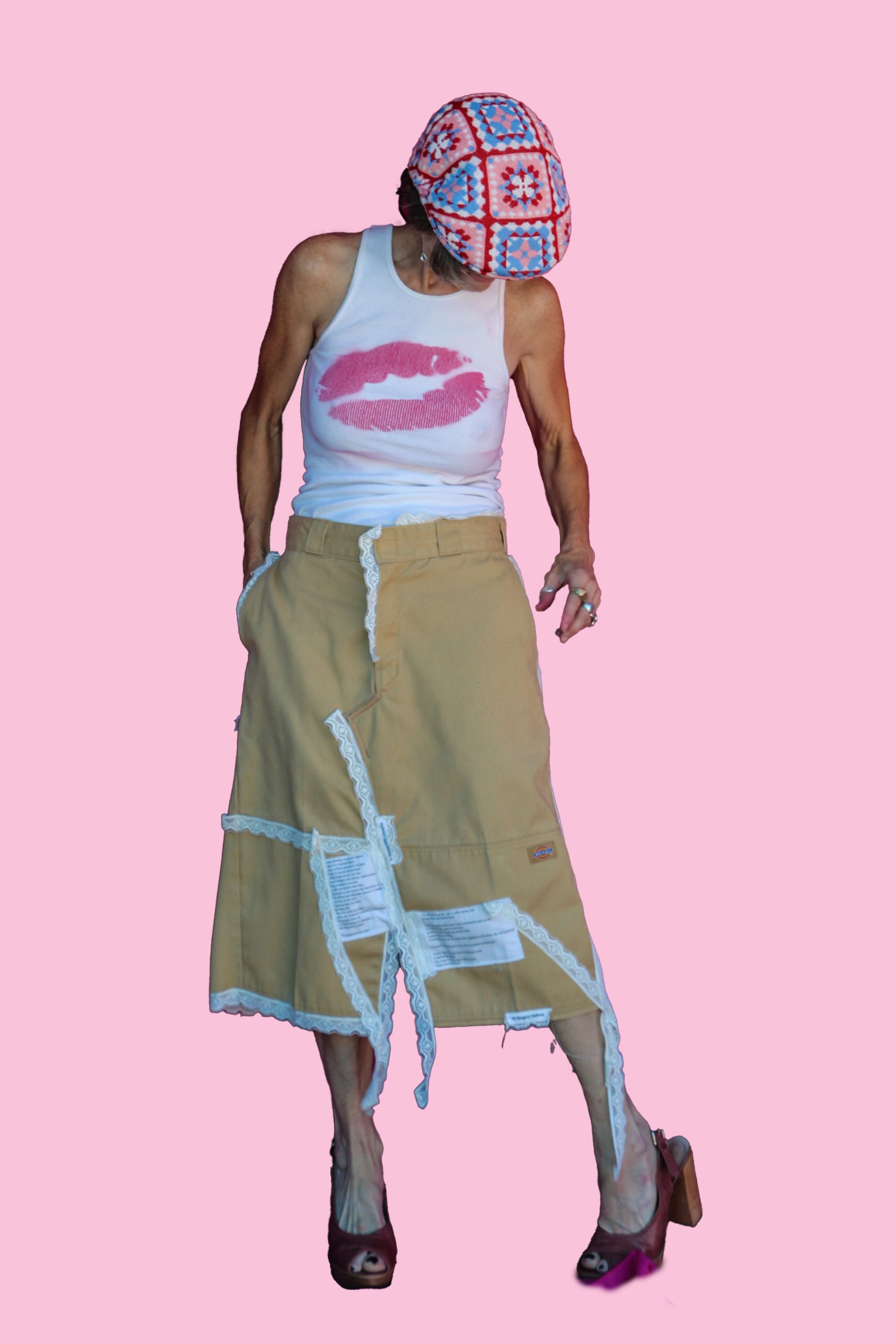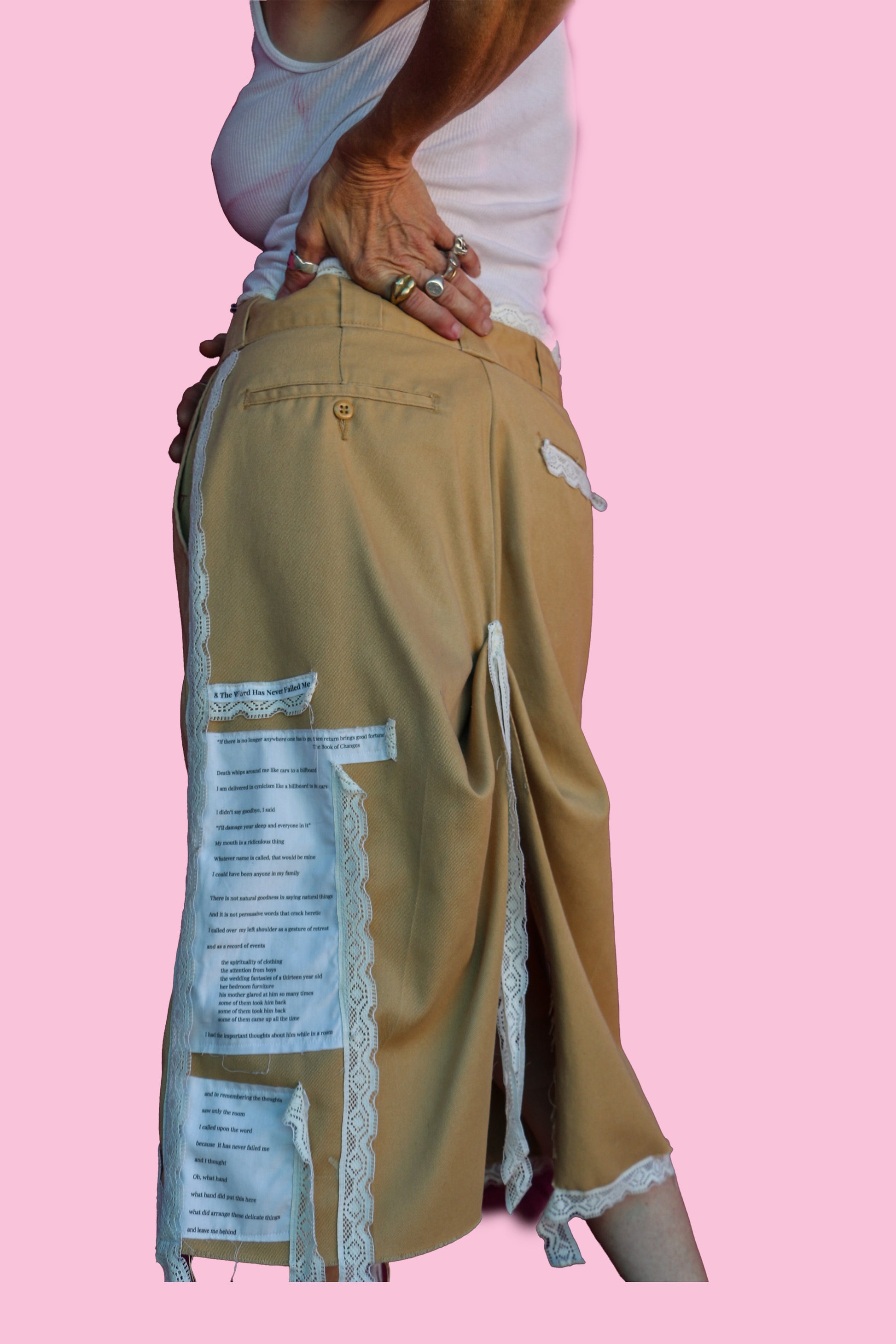 Originally a pair of played out Dickies, I created this skirt using my Husqvarna sewing machine and the beautiful words of Margaret.