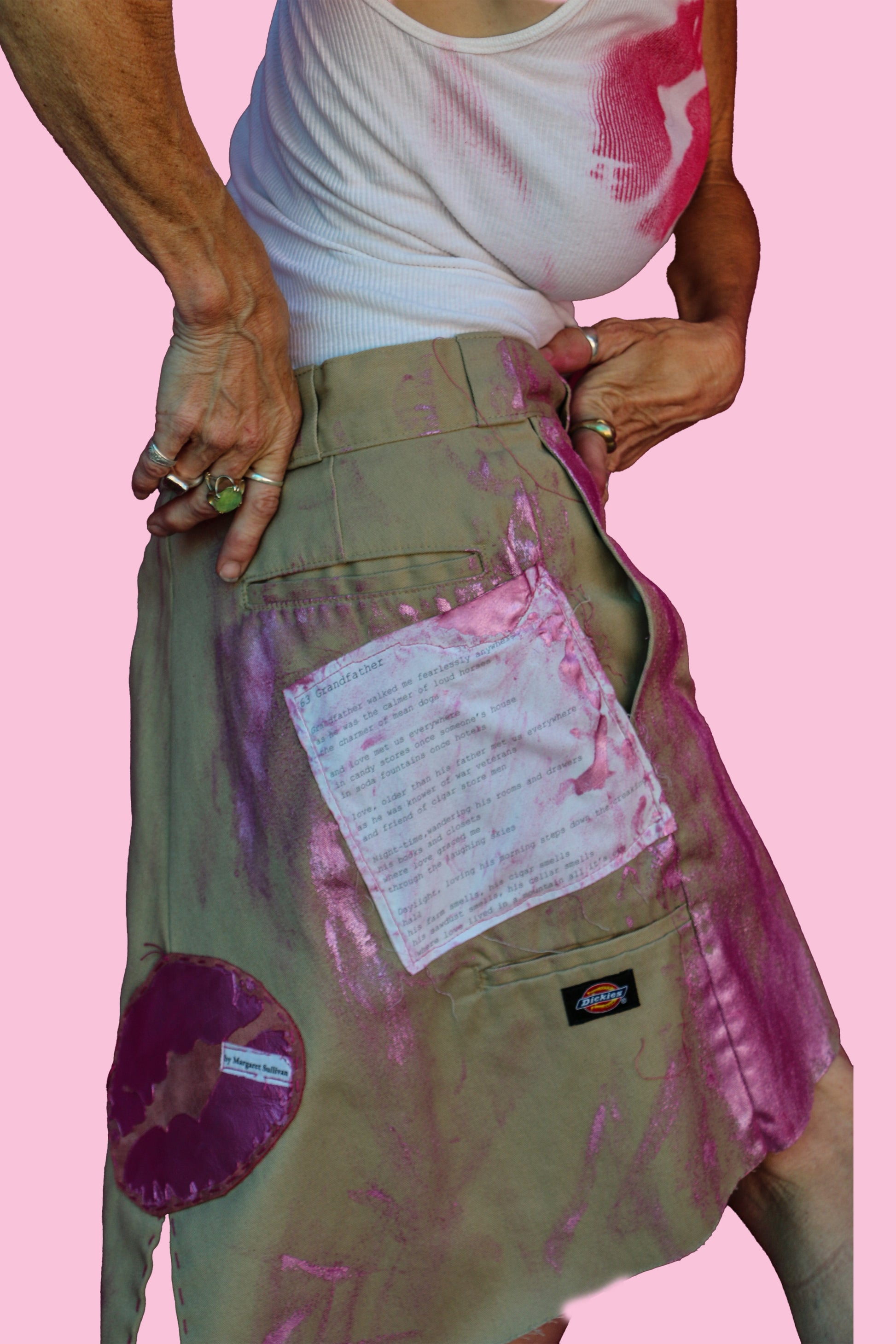 Originally a pair of played out Dickies, I created this skirt using my Husqvarna sewing machine and the beautiful words of Margaret.