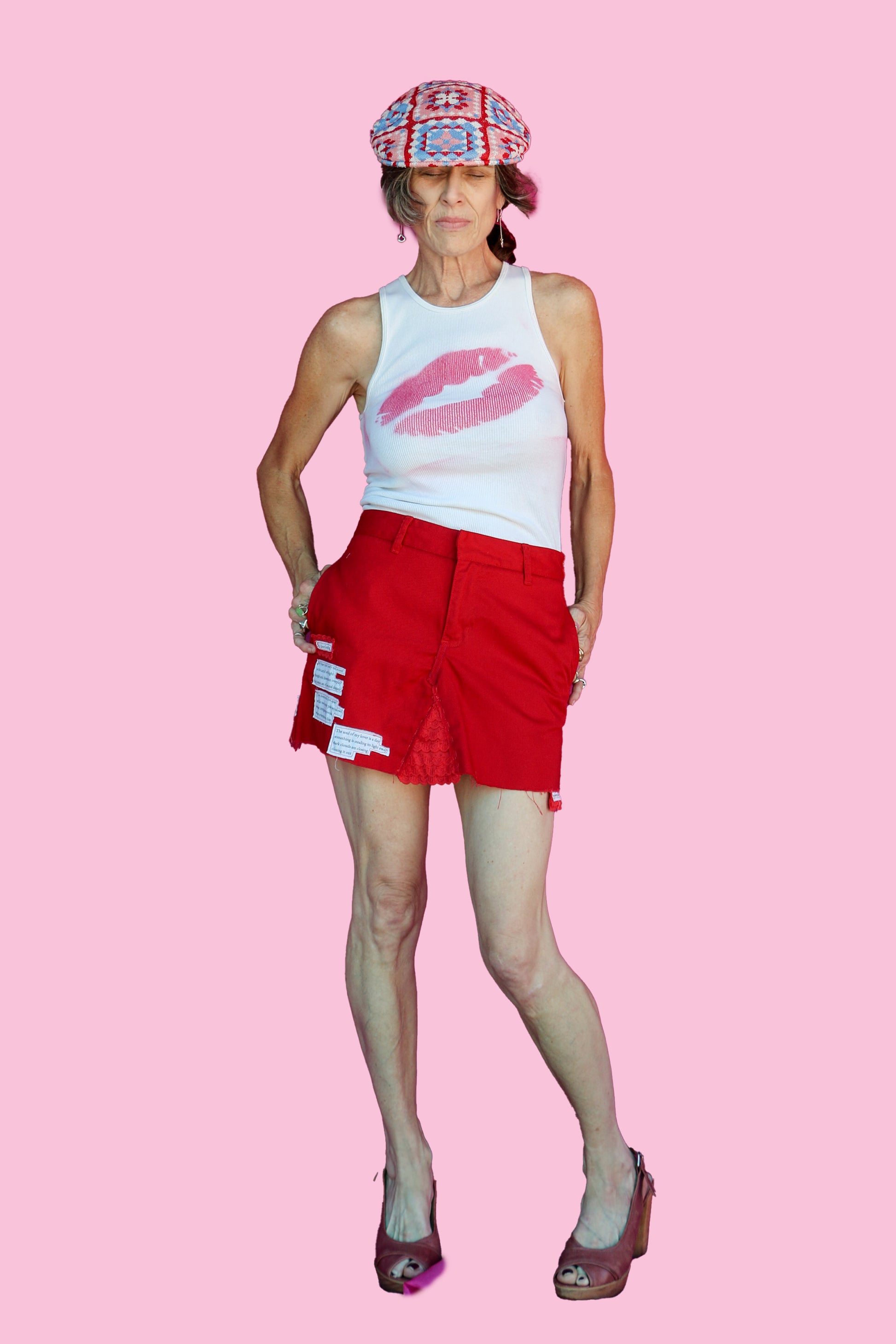 Originally a pair of played out Dickies, I created this skirt using my Husqvarna sewing machine and the beautiful words of Margaret.
